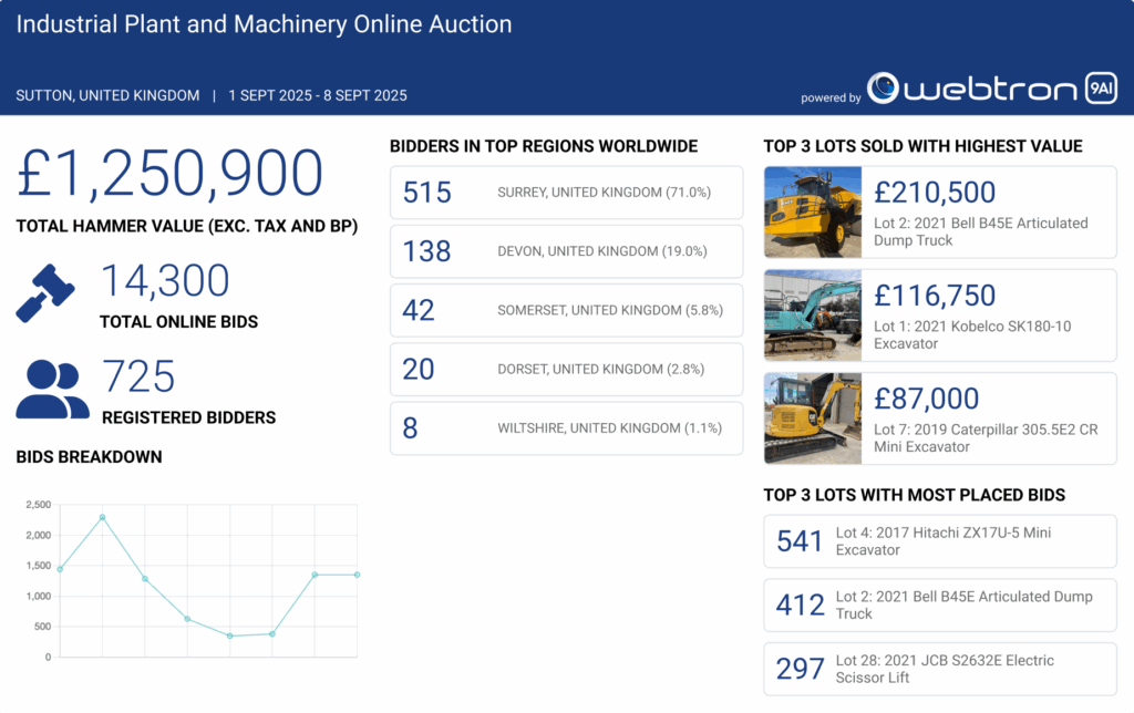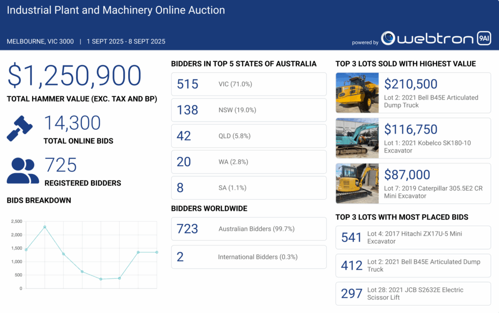 Live webcast and timed auction formats both work well for the industrial, plant and machinery auctioneer. The good news is Webtron gives you both, all in one sleek and modern auction portal that runs from your own website.